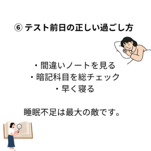 ⑥ テスト前日の正しい過ごし方