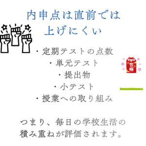 なぜなら、内申点は受験直前では大きく上げにくいからです。