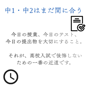 今日の授業、今日のテスト、今日の提出物を大切にすること。